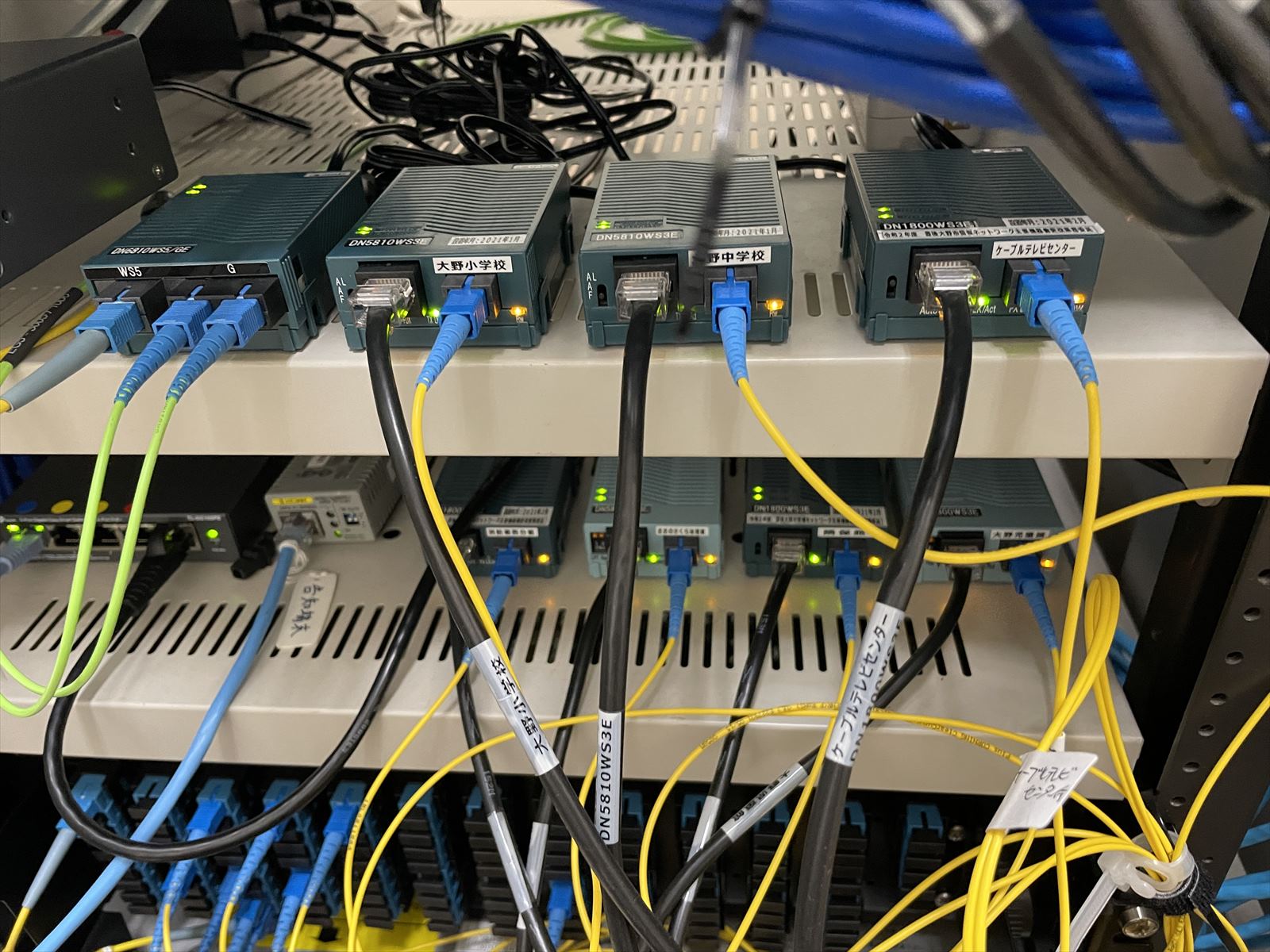 当社ではお客様のネットワークの要望によりLANケーブルよりも長く有線ケーブルの提供が必要な場合や通信インフラ様より通信機器設備間のデータの受け渡しに光ファイバを使った工事など行っております。